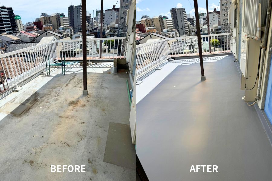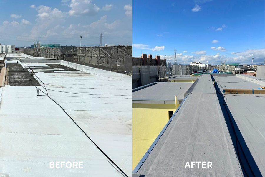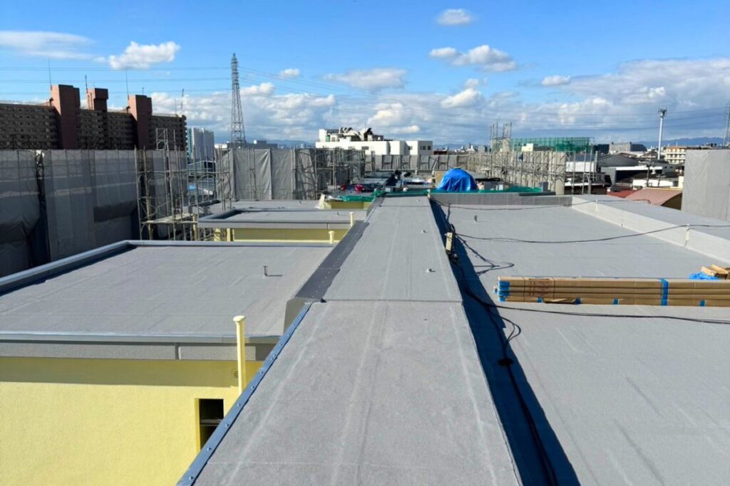 屋上・ベランダ・屋根などの防水工事に対応。ウレタン・FRP・シート防水・アスファルト防水など各種工法に精通し、現場の状況に応じた最適な施工方法で、下地処理から仕上げまで一貫施工を行います。